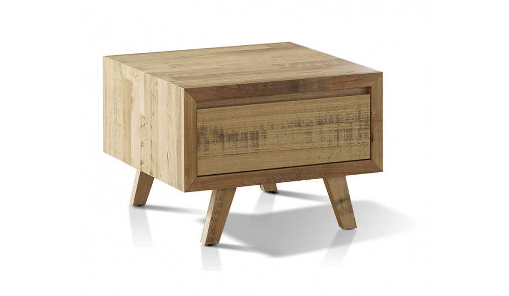 Embrace the beauty of timber with this light and stunning lamp table. A light Tasmanian oak finish enhances the appearance of the contrasting grain to give characterful style. Concealed handles give a streamlined look and the combination of angled timber legs add to the contemporary styling. Each coffee table is one of a kind - featuring uniquely individual natural character with the distressed finish displaying the beauty of natural timber in its raw state. Give your living room a modern makeover with this timber beauty.