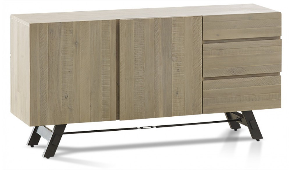 Relaxed coastal chic combines with a hint of industrial style with this contemporary buffet. Blonde Acacia timber has been highlighted with a whitewashed finish for a beach-side vibe. Angled black metal legs add a modern industrial edge to this modern buffet which also has an underlying scandi influence about it. Concealed handles give it a streamlined look with a minimalistic appeal providing plenty of storage flexibility. So if you’re looking to add that industrial vibe to your living room then the Bari buffet might be just what you’re looking for.