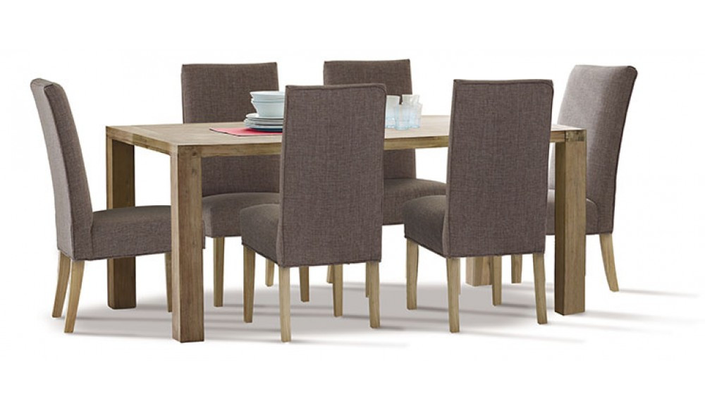 Hardwearing Acacia timber has been given an earthy natural look with a weathered finish to this 7 piece dining suite. The light timber tones give a fresh modern style to suit a variety of interiors. With the Nevada Dining Setting, family and guests will feel right at home. Long lunches will turn into dinners with the oh-so comfortable Nevada Dining Chair. Fully upholstered, with a luxe padded seat and a tallish back make this dining chair perfect for those special occasions. Home entertaining has never been easier with this warm and earthy dining setting.